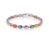 With oval sapphires held in 18K gold, this multi-coloured bracelet showcases the beautiful array of natural sapphire shades. Sparkling melee diamonds punctuate the bracelet for a luxurious finish.