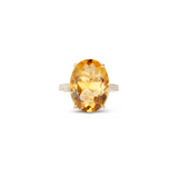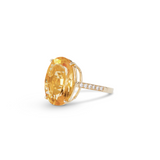A sunny oval citrine is held in glowing 18K yellow gold, finished with a half pavé diamond band. The perfect piece to light up an understated ensemble.